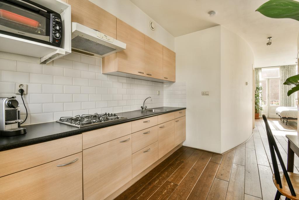 Er is een nette keuken met inbouwkoelkast en kooktoestel op gas.