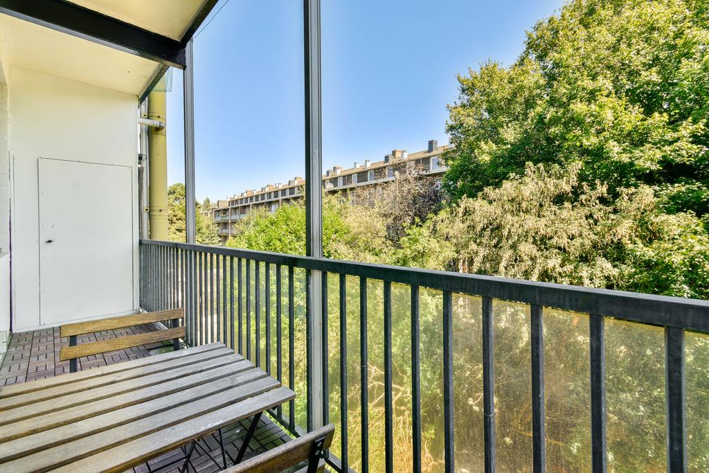 Hal/entree met tochtportaal en meterkast. Lichte woonkamer met schuifpui naar het extra brede balkon, dat uitzicht biedt op de typische Amsterdamse binnentuinen. De open luxe keuken is voorzien van alle inbouwapparatuur. Er zijn 2 goede slaapkamers aan de voorzijde. De moderne badkamer, uitgevoerd in Beton Ciré, is voorzien van een douche, toilet en wastafel. Op het balkon bevindt zich een bergkast met de CV-ketel (2016).