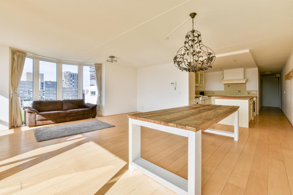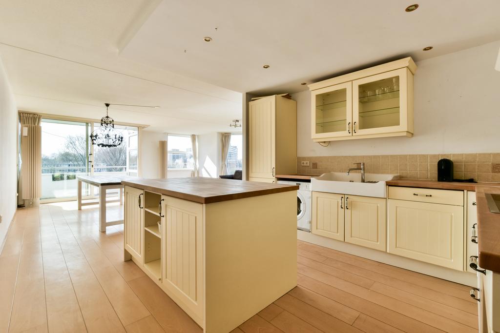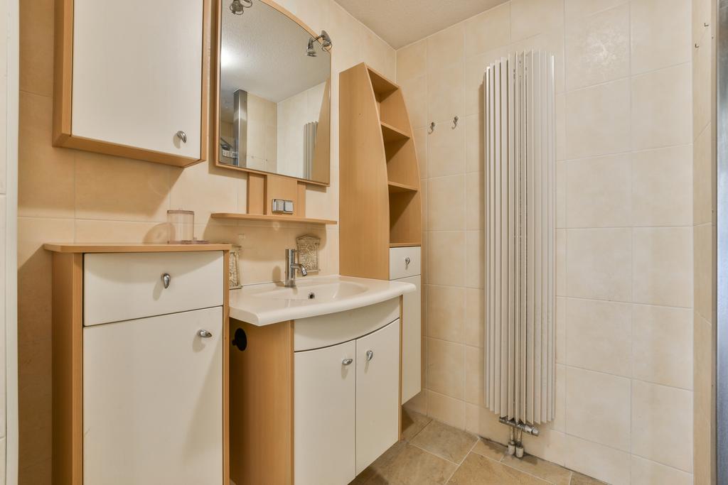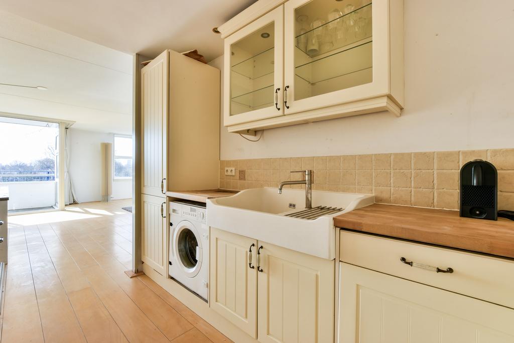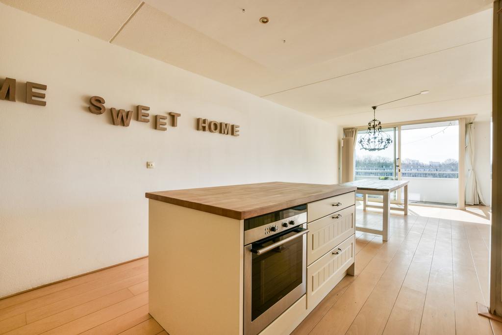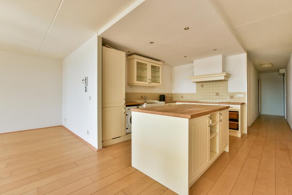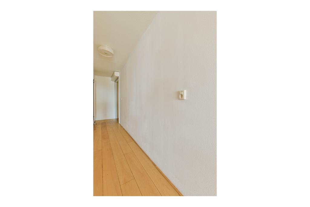Entrance, When you enter the house you will find the open kitchen with built-in appliances. On the other side of the hallway you will find two bedrooms, one of which is very spacious and has a handy built-in wardrobe. Further down the hallway there is a storage cupboard. The bathroom has a washbasin, toilet and a double shower. The hallway also provides access to a bright living room, where large windows provide plenty of natural light. A sliding door leads to the southwest-facing balcony, where you can enjoy the sun and the view of the surroundings. This well-thought-out layout provides a functional living space. This apartment offers the best of comfortable living combined with a convenient location near all the amenities Amsterdam has to offer.