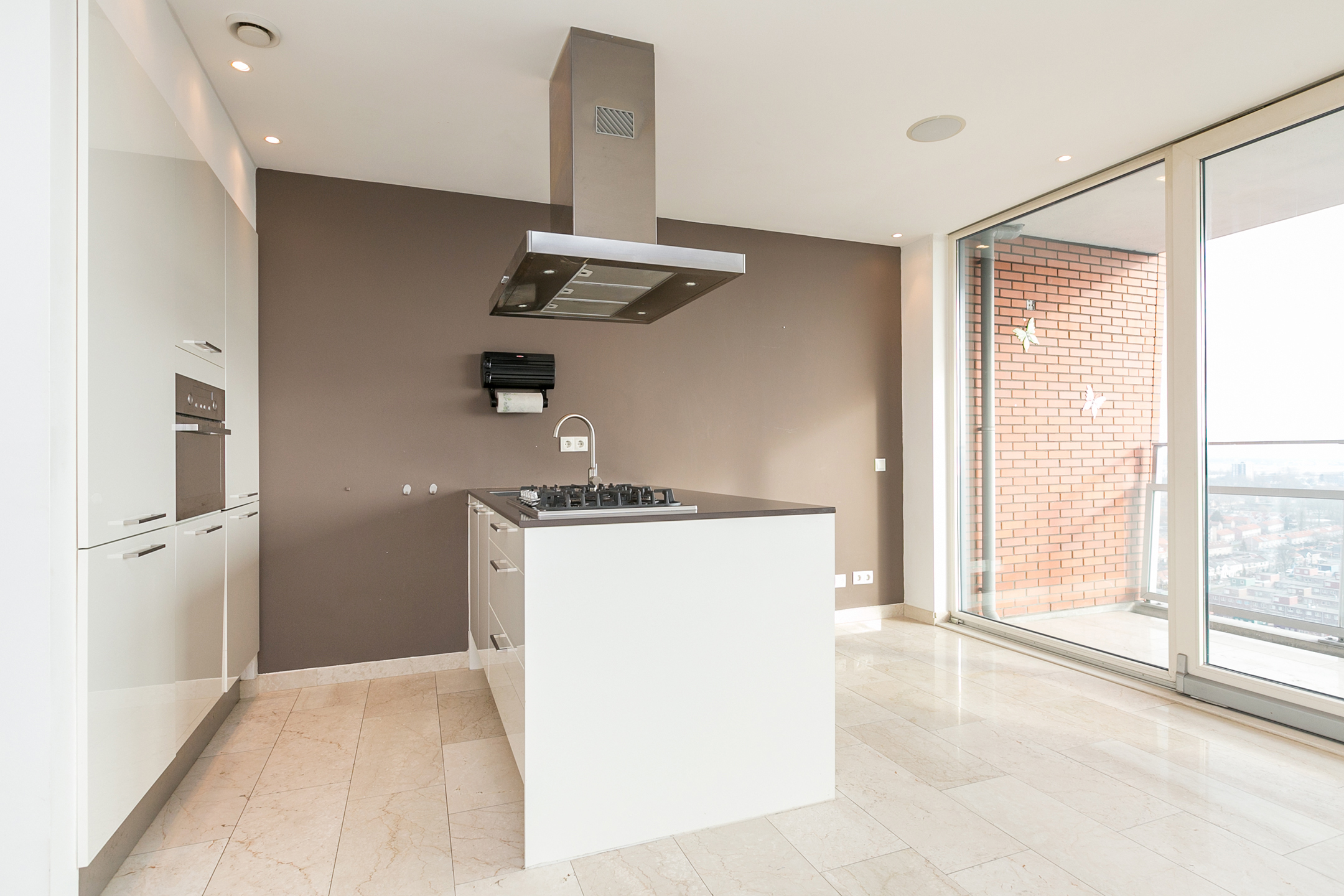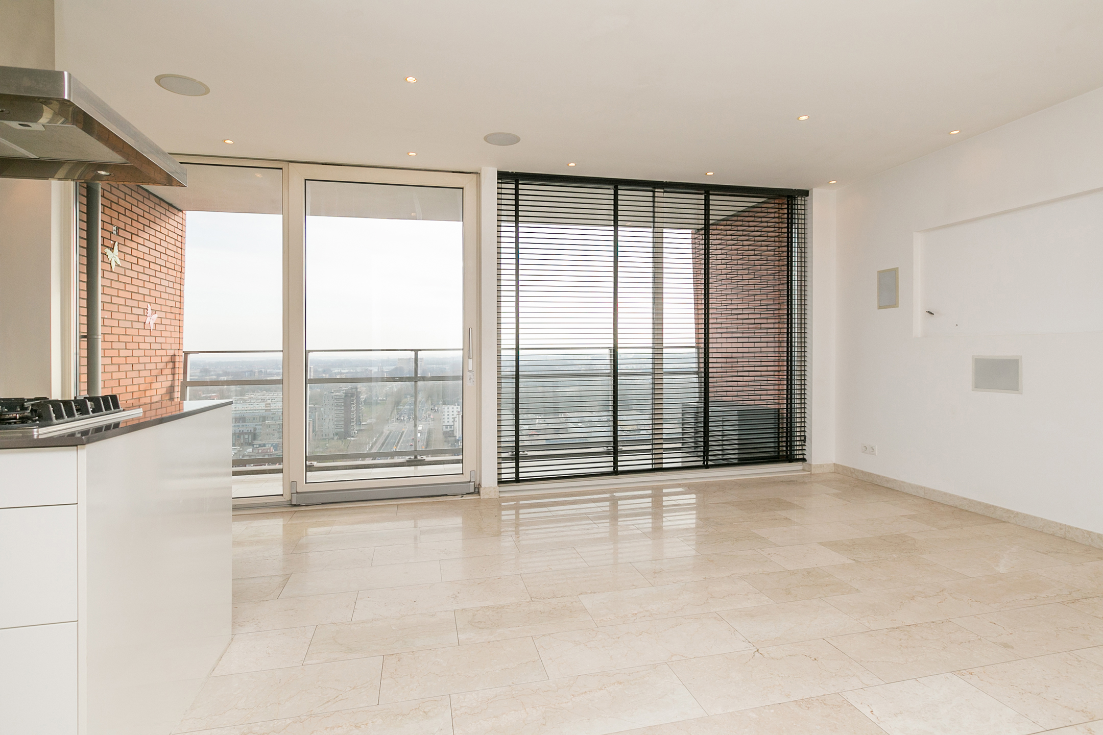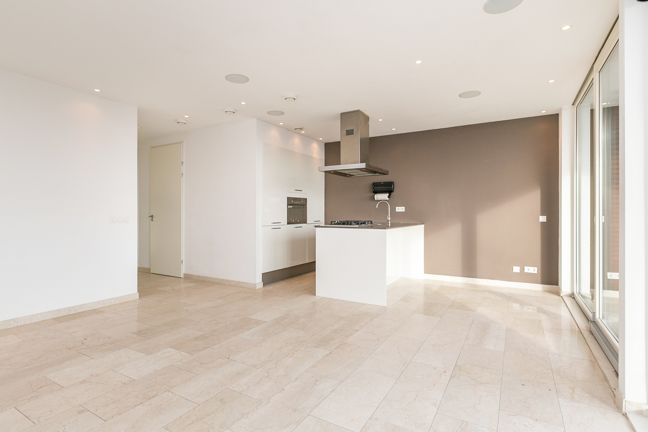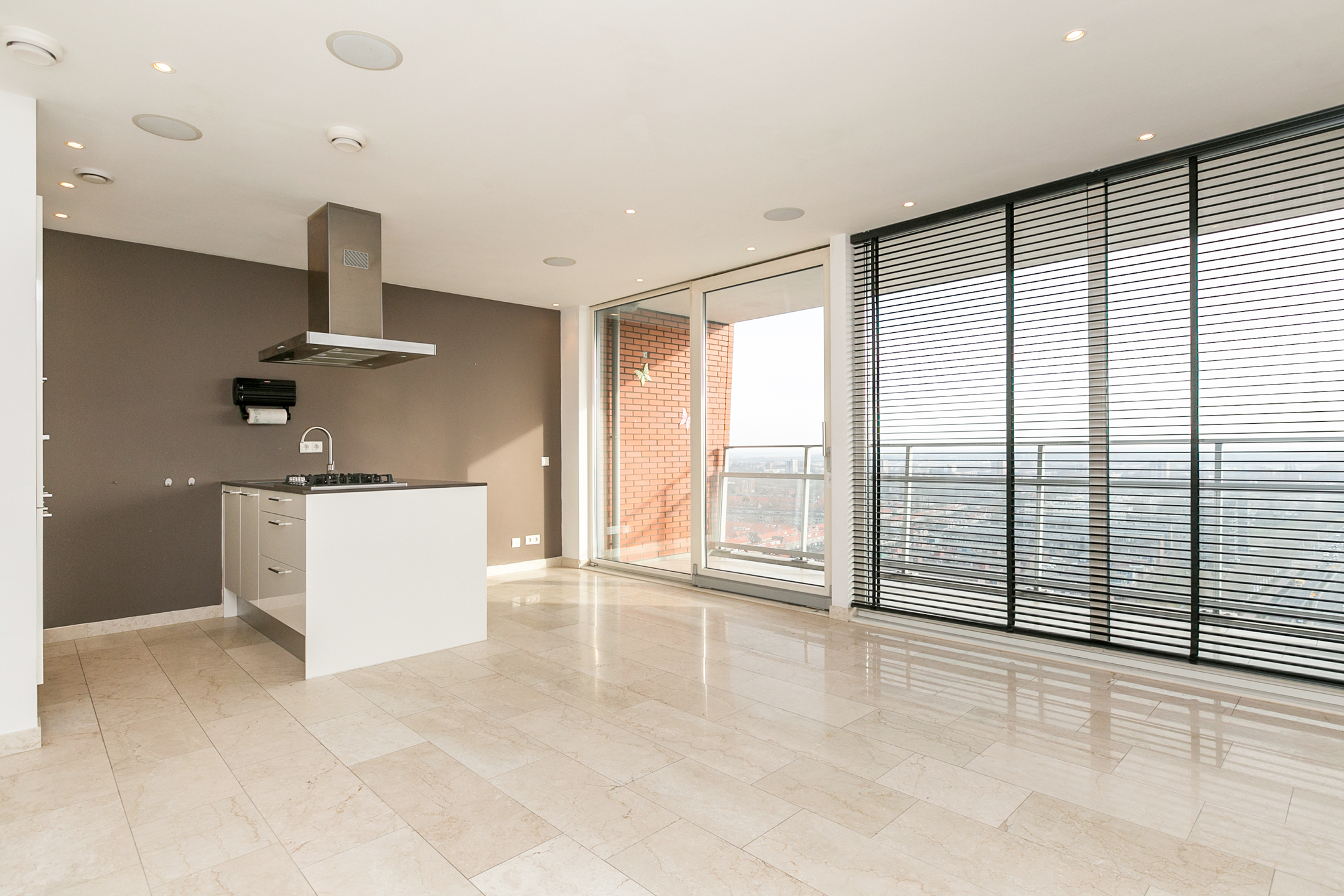Marmeren vloer door heel de woning inclusief balkon.
