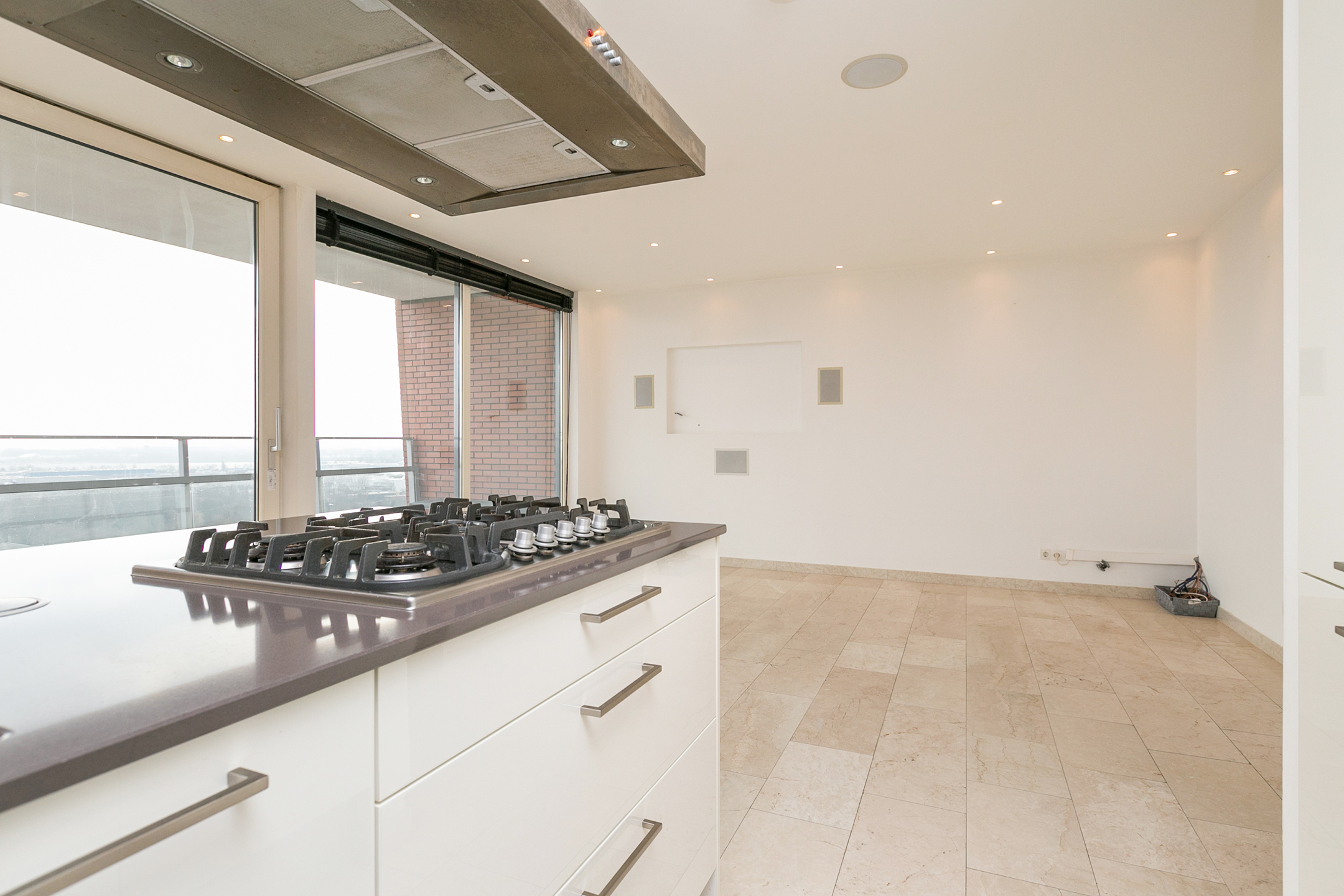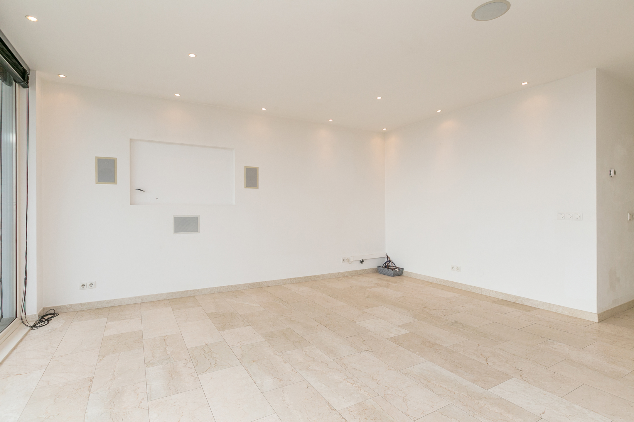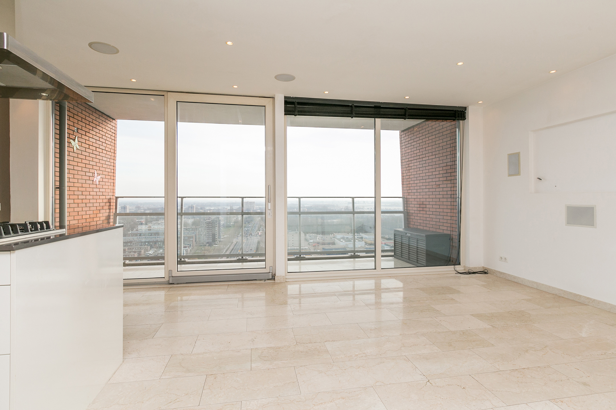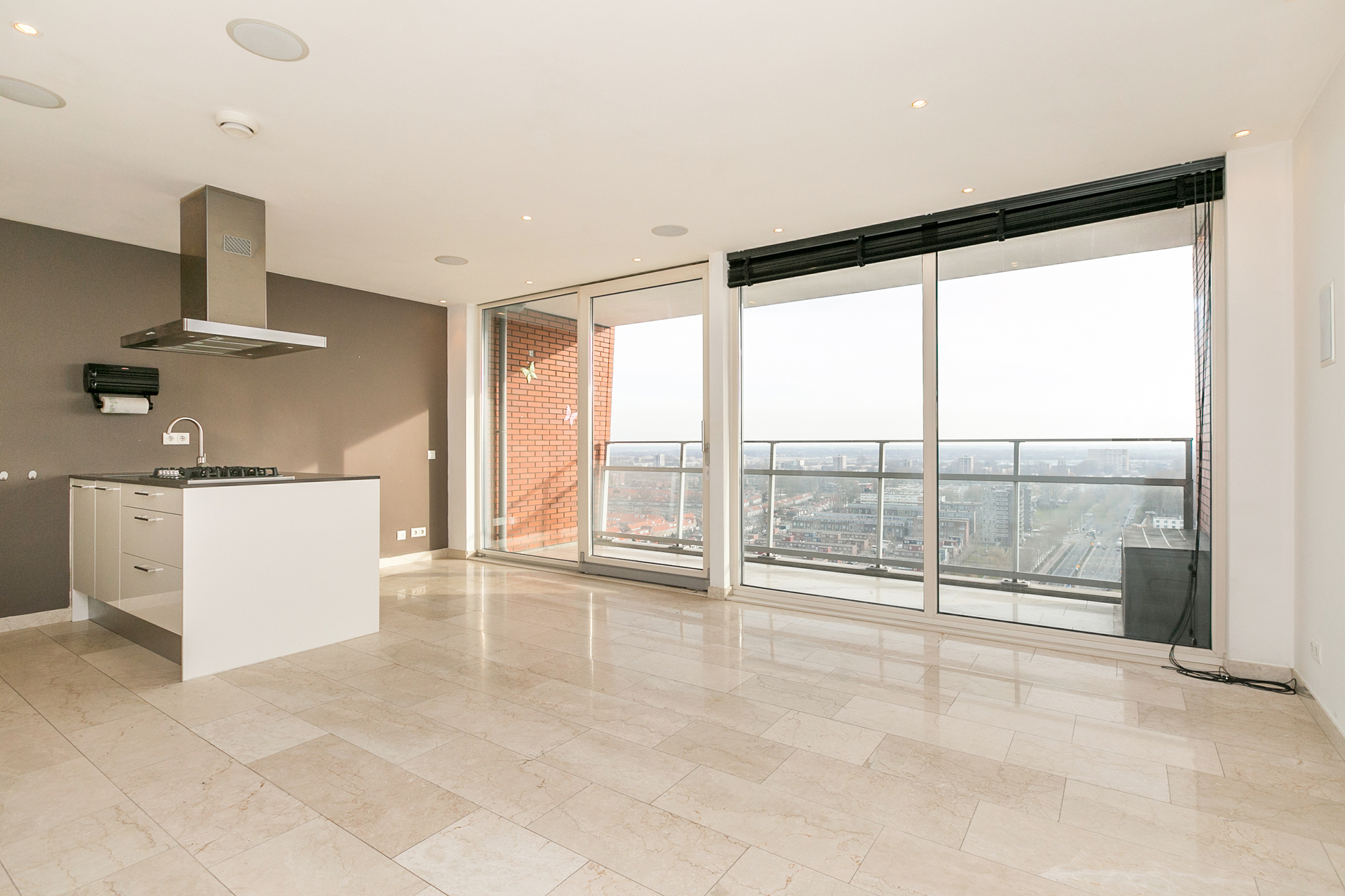 Marmeren vloer door heel de woning inclusief balkon.