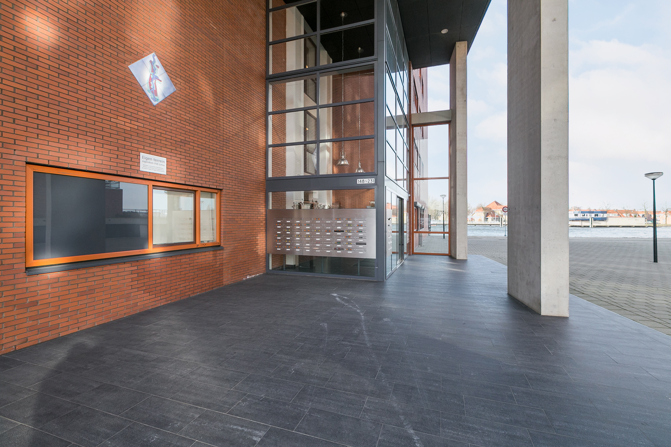 Via de entree kom je binnen in de hal, die toegang geeft tot vrijwel alle vertrekken van het appartement. Direct aan de hal bevinden zich het separate toilet, de badkamer en een praktische inpandige berging met opstelplaats voor wasmachine/wasdroger en extra bergruimte.