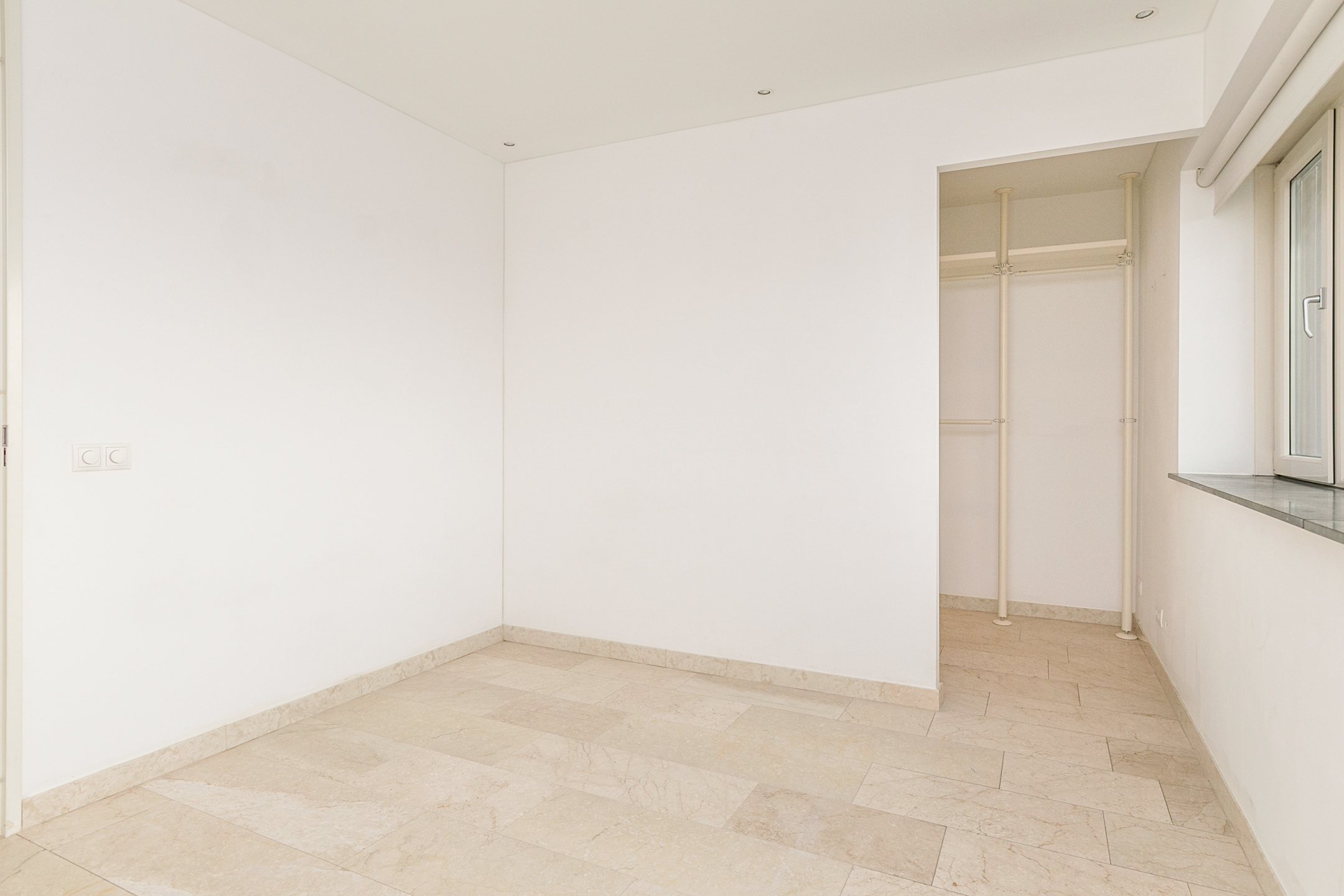 At the rear of the apartment is the spacious bedroom with a walk-in closet. There is also a second room of approximately 5 m², ideal as a workspace or walk-in closet. By installing a partition, this room can easily be divided into two bedrooms. The unobstructed view and the large windows ensure that both rooms remain spacious and bright. The bathroom, equipped with a bathtub and a sink, is centrally located.