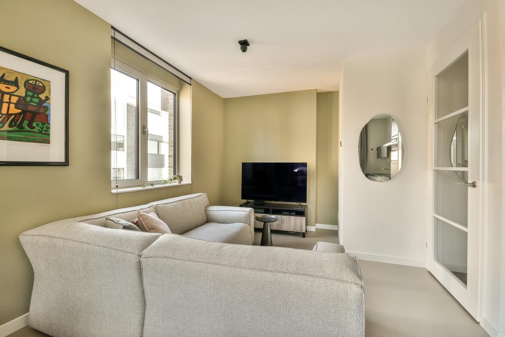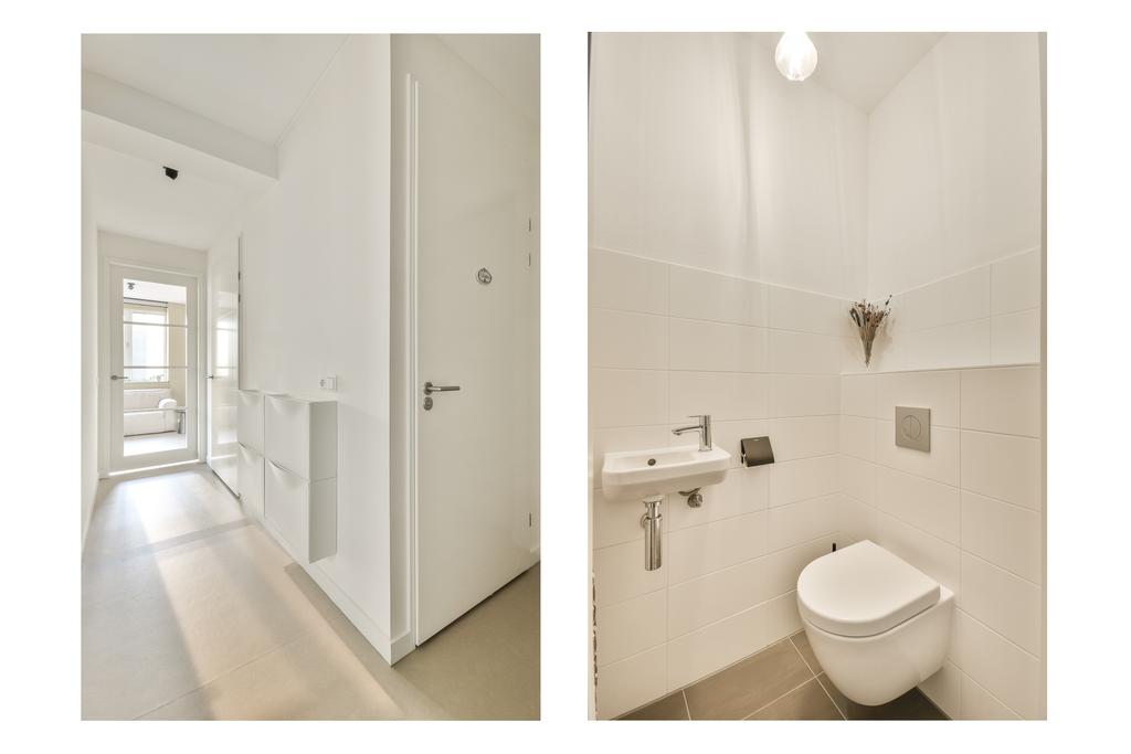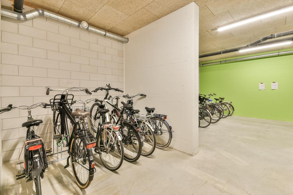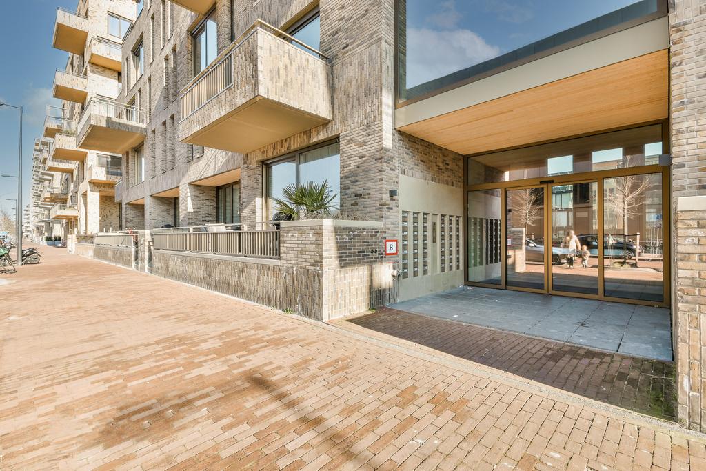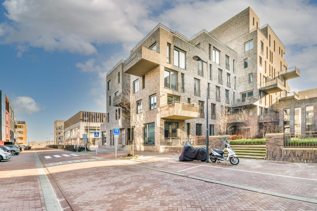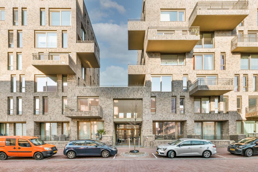 The playful facade of the apartment complex immediately catches the eye with its protruding balconies. The entrance on the first floor leads to the hall with access to the living-dining room, the bedroom, a spacious closet, and a separate toilet. Through a glass door, you enter the bright living room and open kitchen with luxury appliances. The sliding glass doors give access to the spacious balcony with plenty of sun and views. In the bedroom, you also have a view from the rear of the building and you can reach the neat bathroom with a towel dryer and walk-in shower. You can store your bicycle in the basement of the complex.