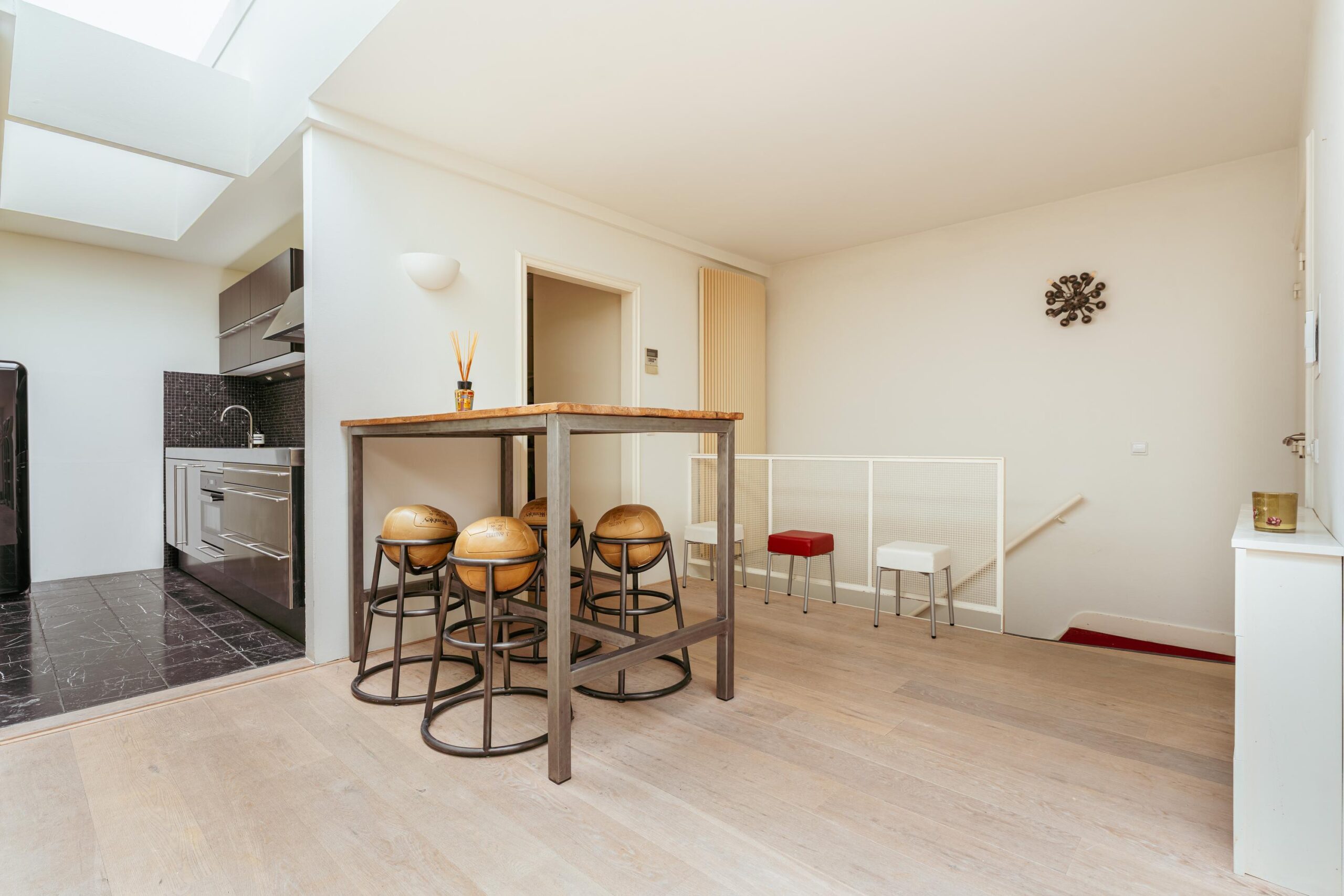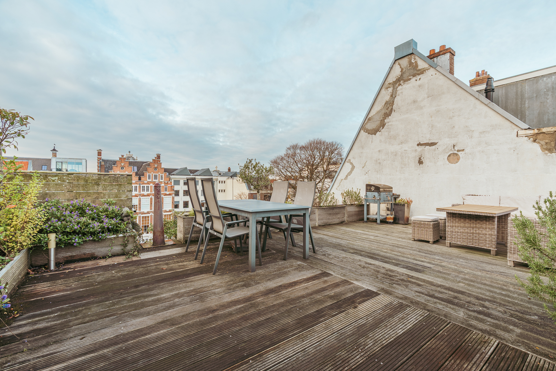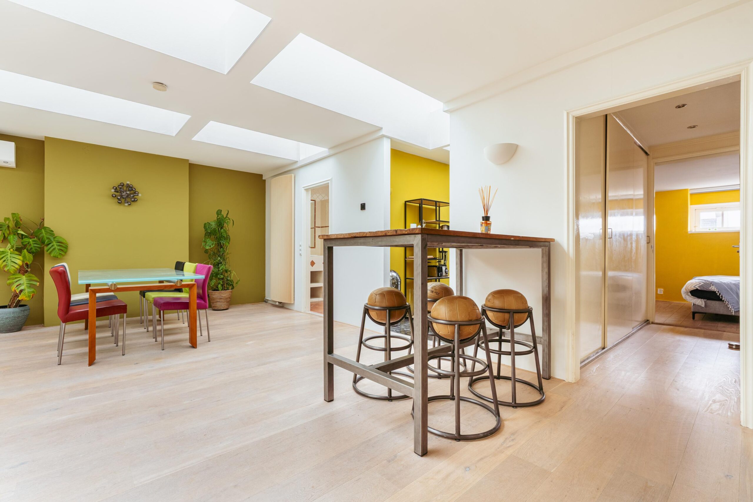A unique and almost secret loft apartment on the top floor of a beautiful national monument, complete with a roof terrace of over 60 m². This exclusively located 3-room apartment offers exceptional privacy and a remarkably bright living experience thanks to the long sightlines and the generous skylights that illuminate the entire house. The apartment of approximately 109 m² is located on the third and highest floor and directly connects to an impressive roof terrace that extends across the entire terrace and rear of the house. The apartment has been largely renovated, has a sleek finish, and the height and open structure give it the feel of a true loft. Definitely not a standard apartment. The national monument in which it is located also has a special quality: the above-average width of the building. Authentic details are particularly evident in the characteristic façade, the entrance, the staircase, the marble work, the hallway, and the generous proportions.