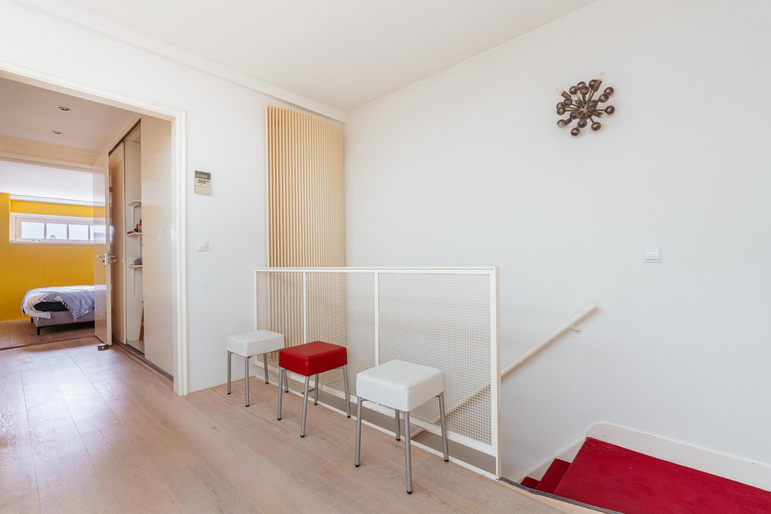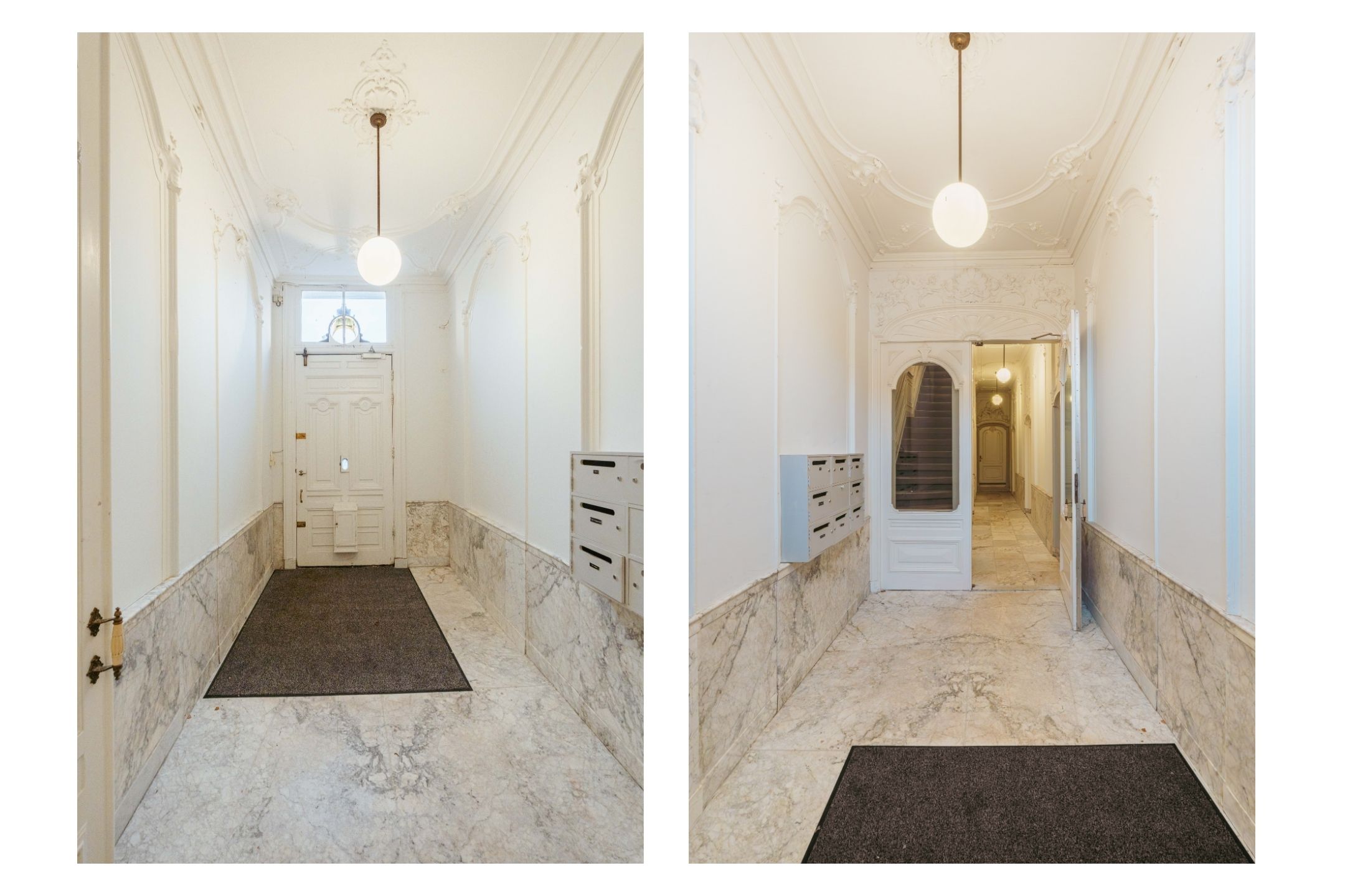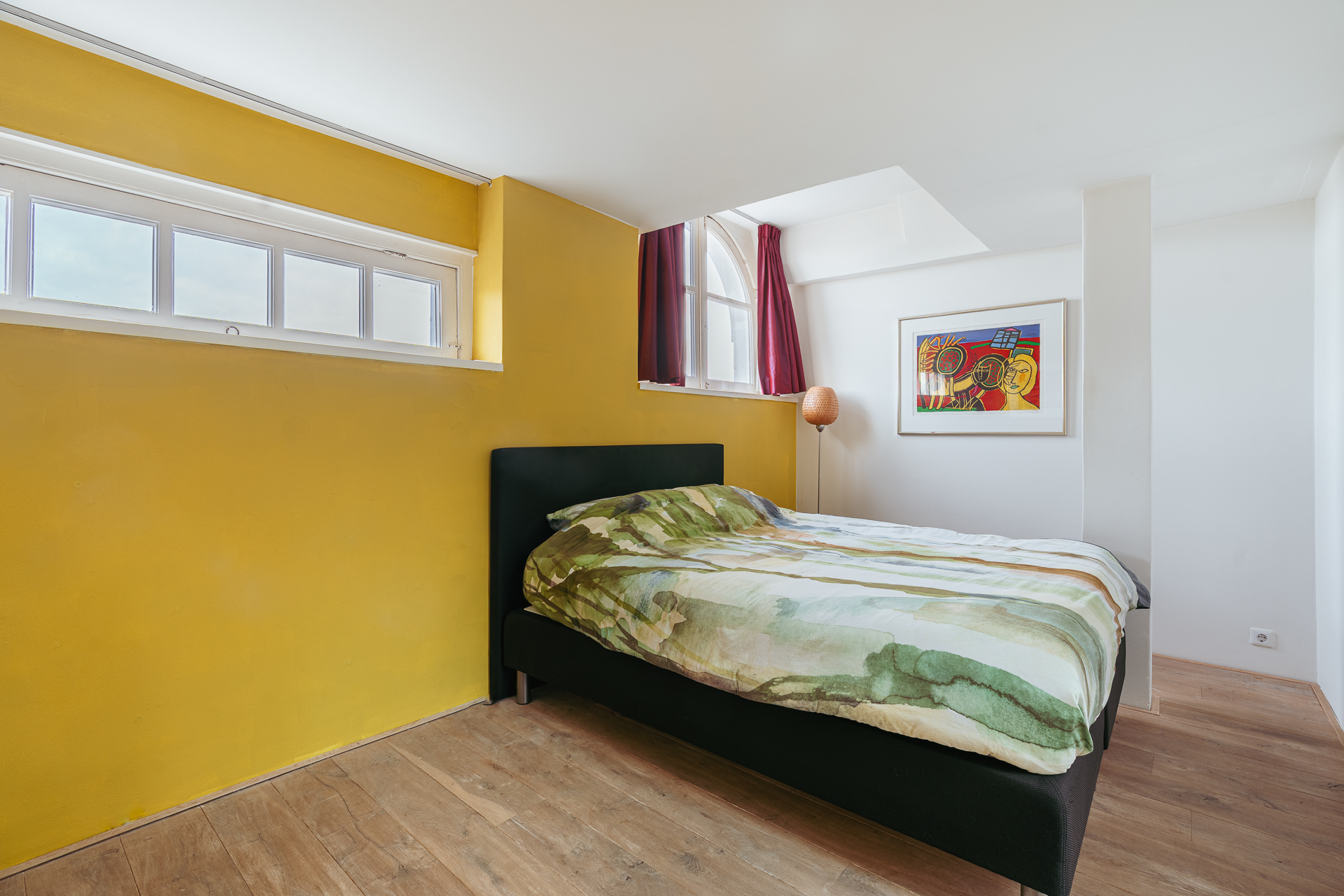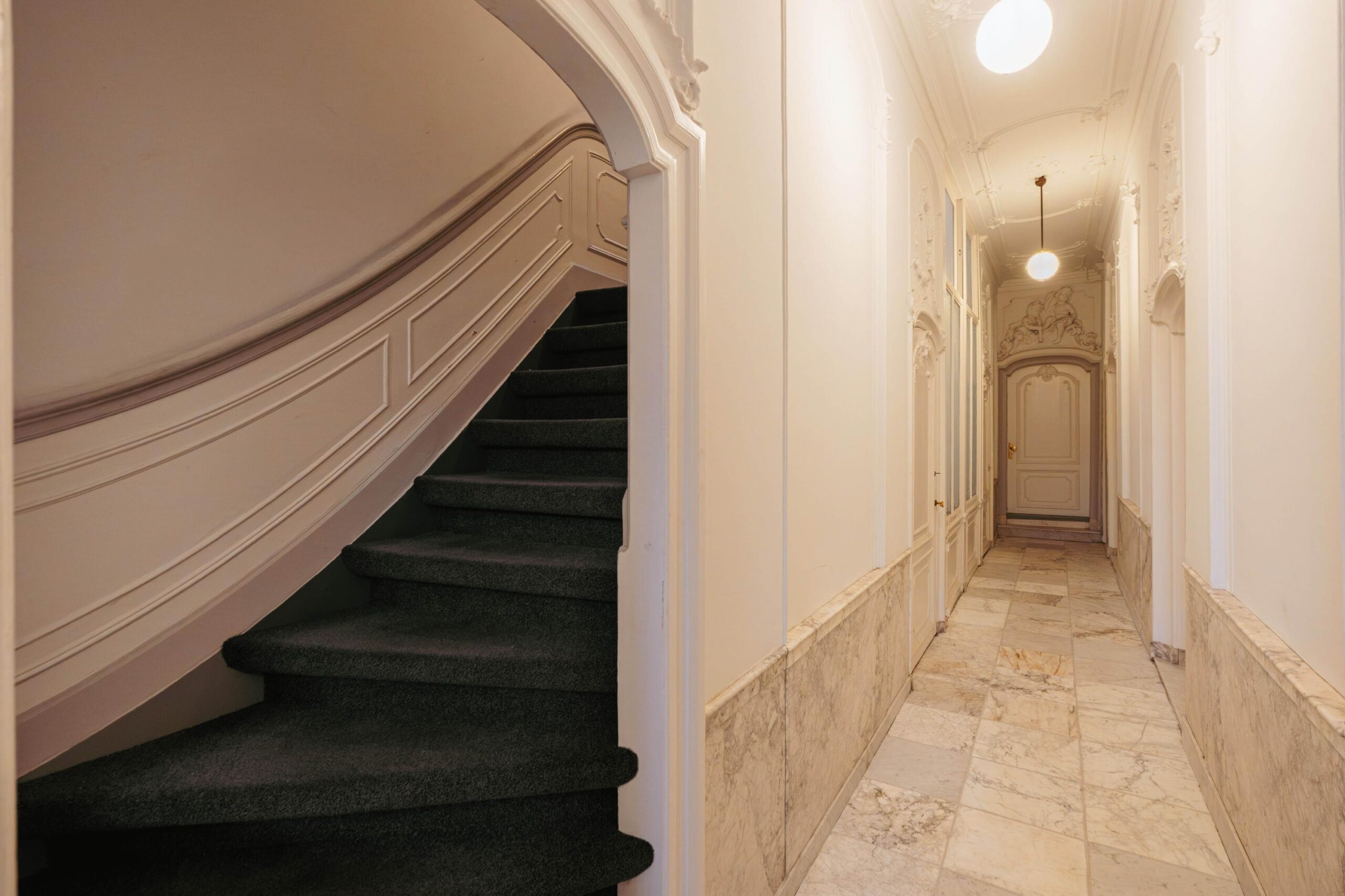 A unique and almost secret loft apartment on the top floor of a beautiful national monument, complete with a roof terrace of over 60 m². This exclusively located 3-room apartment offers exceptional privacy and a remarkably bright living experience thanks to the long sightlines and the generous skylights that illuminate the entire house. The apartment of approximately 109 m² is located on the third and highest floor and directly connects to an impressive roof terrace that extends across the entire terrace and rear of the house. The apartment has been largely renovated, has a sleek finish, and the height and open structure give it the feel of a true loft. Definitely not a standard apartment. The national monument in which it is located also has a special quality: the above-average width of the building. Authentic details are particularly evident in the characteristic façade, the entrance, the staircase, the marble work, the hallway, and the generous proportions.