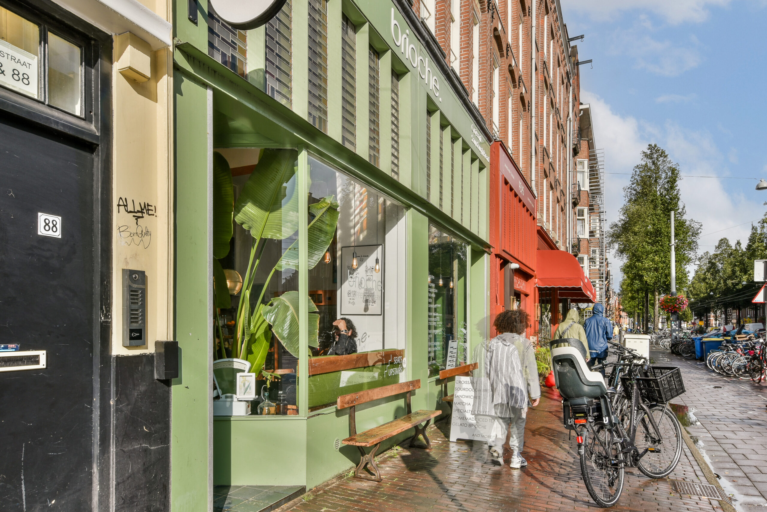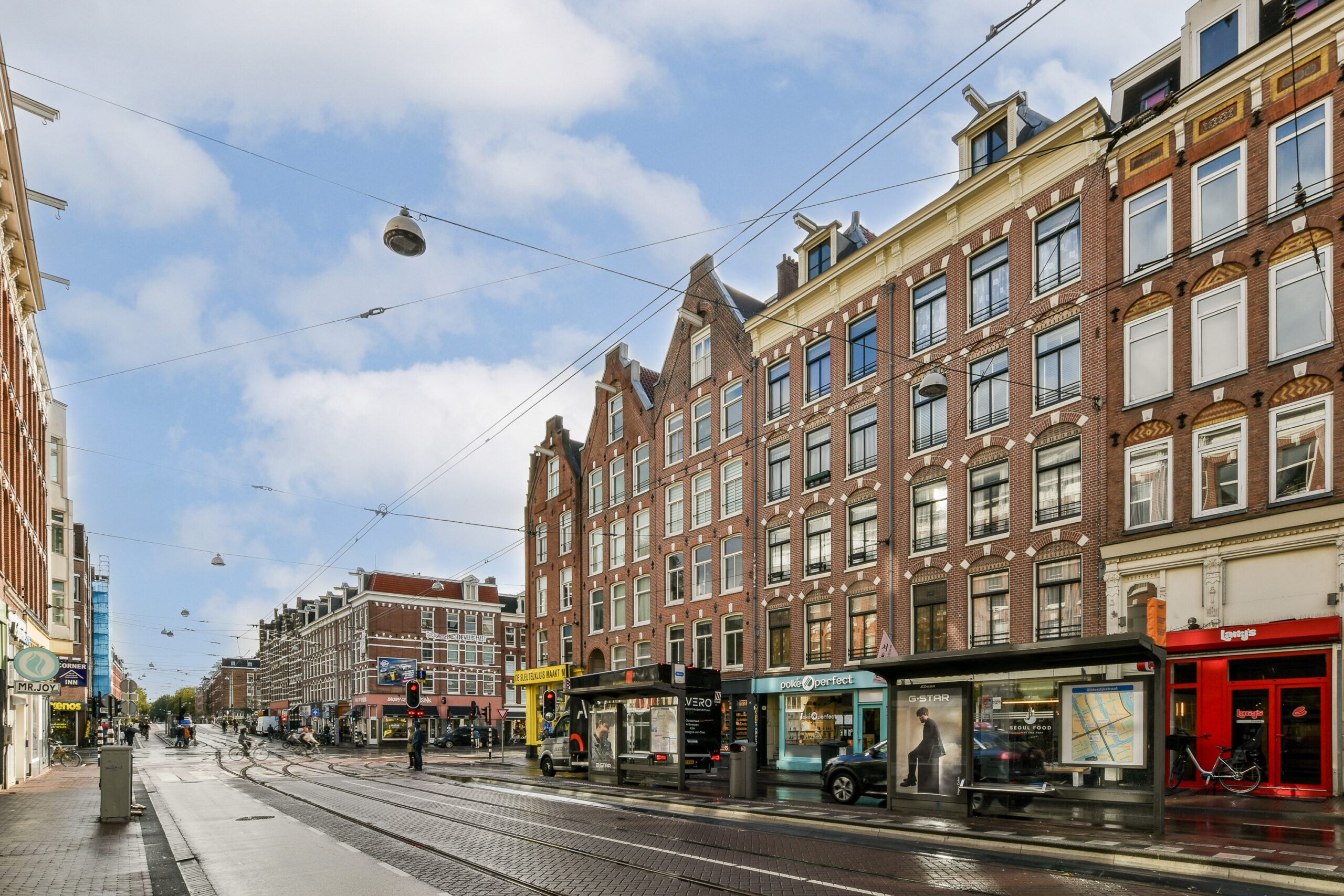 Located on the corner of Kinkerstraat and Bilderdijkstraat in the popular Oud-West neighborhood, with trendy coffee bars, restaurants, and gyms all within walking distance. The Jordaan, Vondelpark, and Museumplein can be reached within minutes on foot, by bike, or by public transport. Several public transport connections are nearby, and the A10 Ring Road is easily accessible. Parking in the area is possible with a resident’s permit.