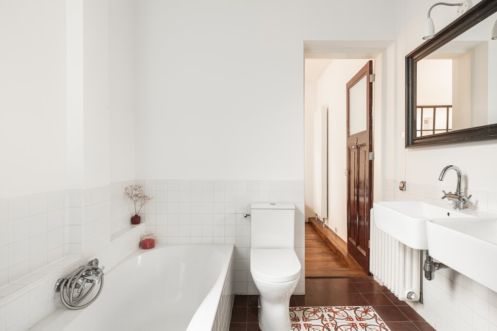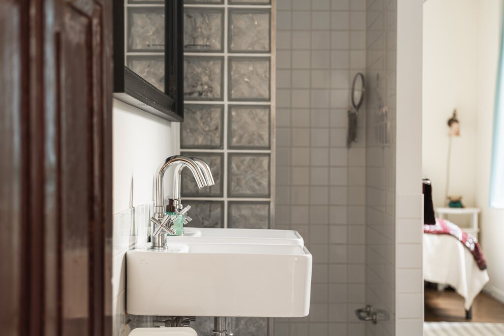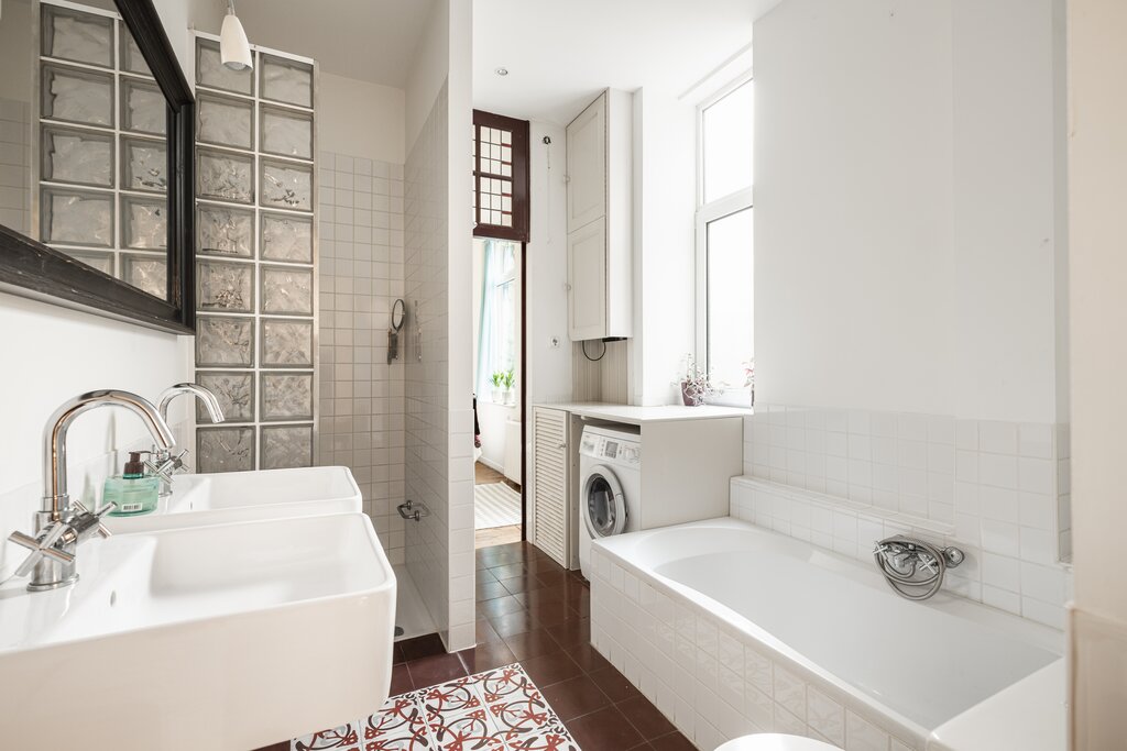 Aan de achterzijde vindt u de badkamer die voorzien is van vloerverwarming, twee wasbakken, een douche, toilet en ligbad. De badkamer leidt u vervolgens naar de slaapkamer middels een schuifdeur met authentieke glas-in-lood details. Vanuit de slaapkamer heeft u zicht op het groen in de tuin en loopt u zo naar buiten. Een luik in de vloer geeft u bovendien toegang tot een droge semi-kelder/betonnen bak (9,6 m2). Ideaal te gebruiken als opslagruimte.