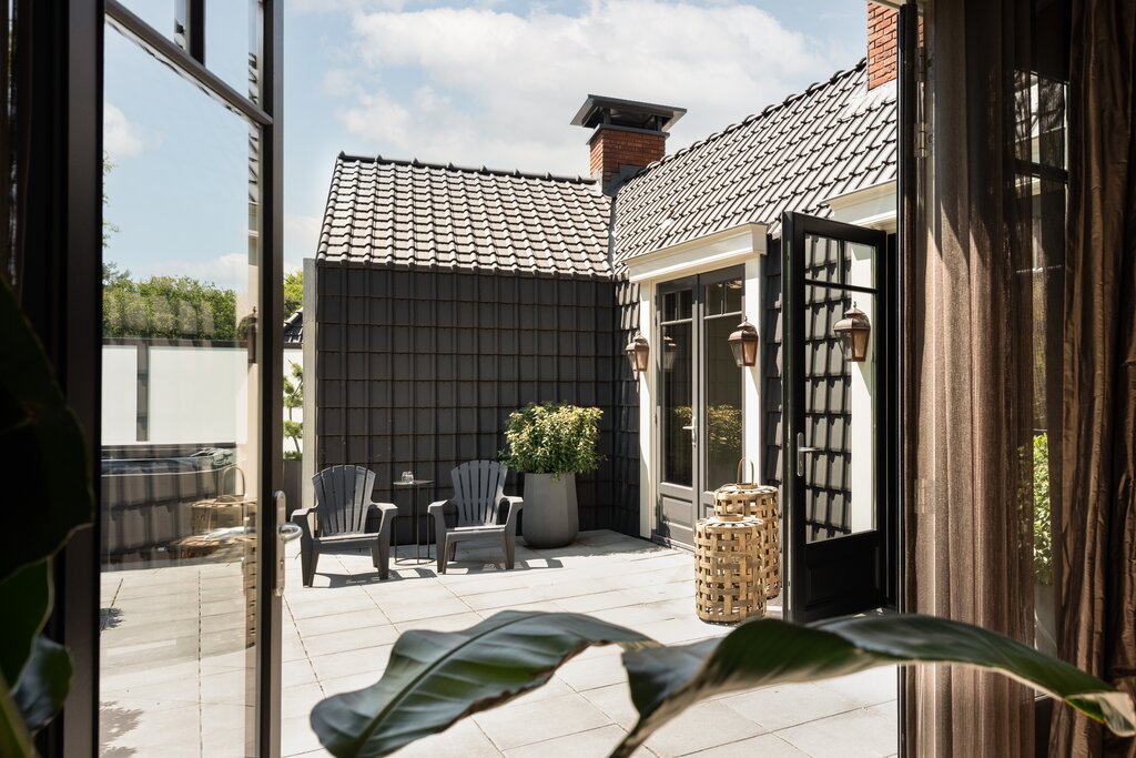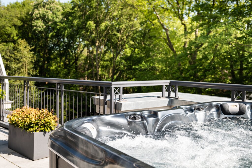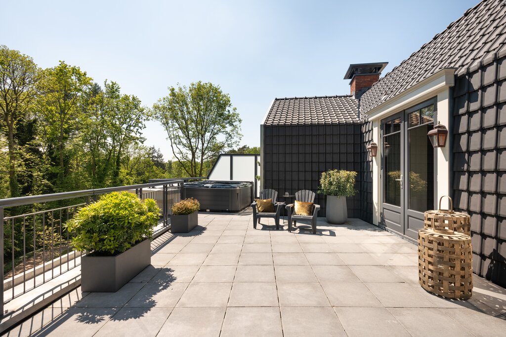 Vanuit de keuken en de zitkamer heeft u via drie dubbele deuren toegang tot het 53m2 dakterras met een ligging op het zonnige zuiden. Op het terras bevindt zich ook de jacuzzi.