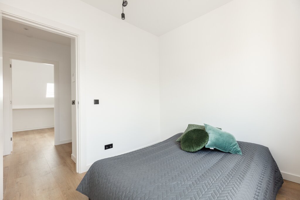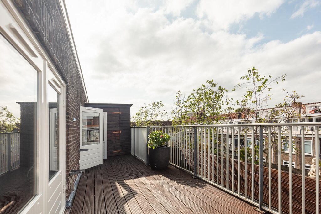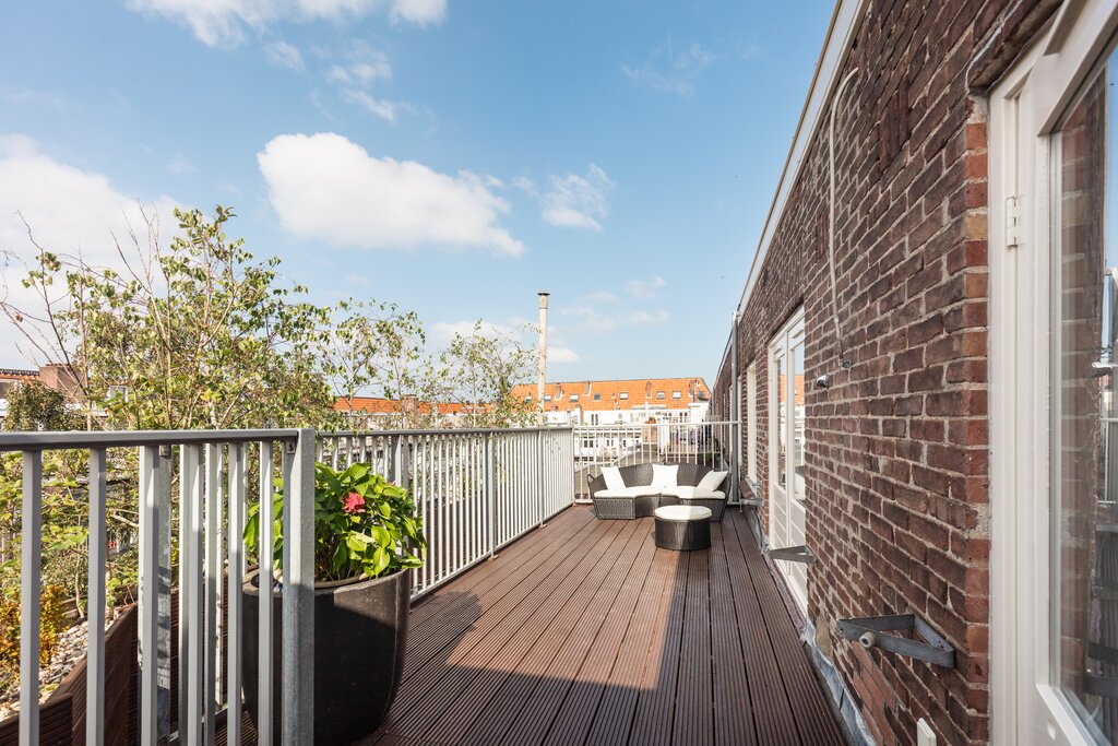 You enter the house on the fourth floor through a spacious landing with storage space that gives access to all rooms. The spacious living room with a modern open kitchen with various built-in appliances. Both through the kitchen and through one of the two bedrooms you have access to the spacious roof terrace with storage space and a view of the Okura Hotel. The sleek, modern bathroom offers you every luxury with a bath, separate shower, and double sink.