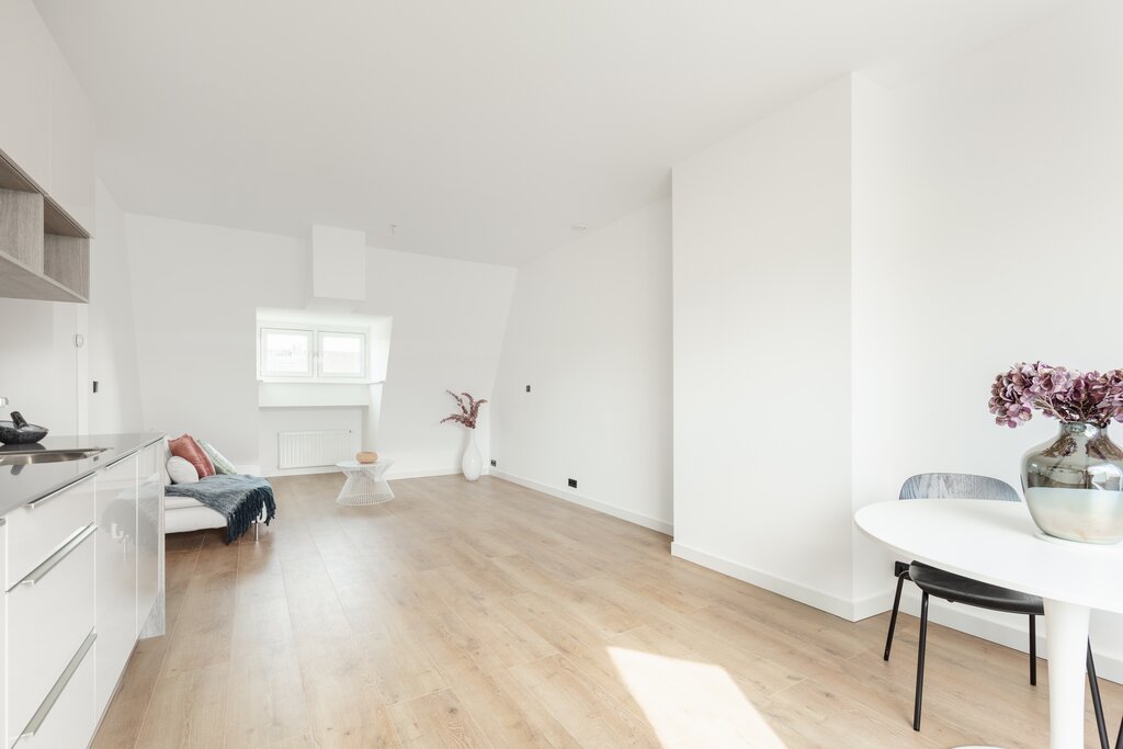 This completely renovated 3-room apartment has no less than two bedrooms and is fully equipped with every luxury. You become the owner of this beautiful apartment with a gross living area of 73 m2, in accordance with NEN 2580 measurement the size is 57 m2. The difference is due to the high attic floor, where there are a number of sloping walls. So the apartment really looks much bigger. You have to see and experience that for yourself.