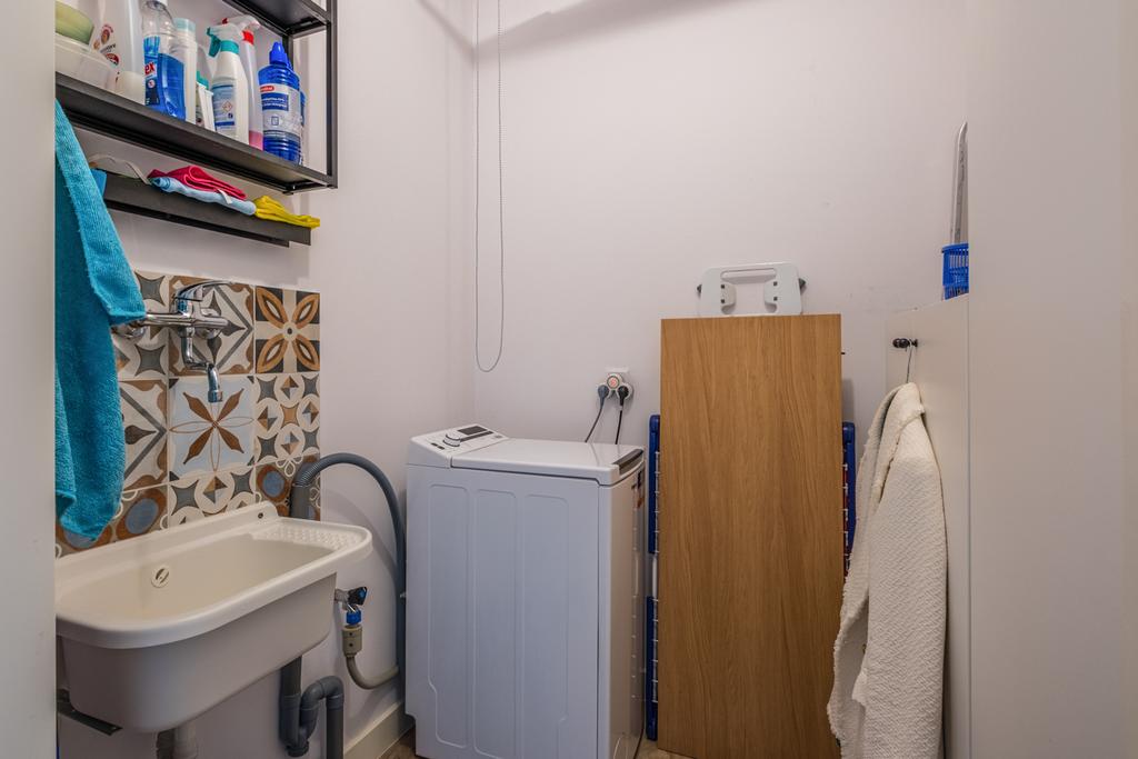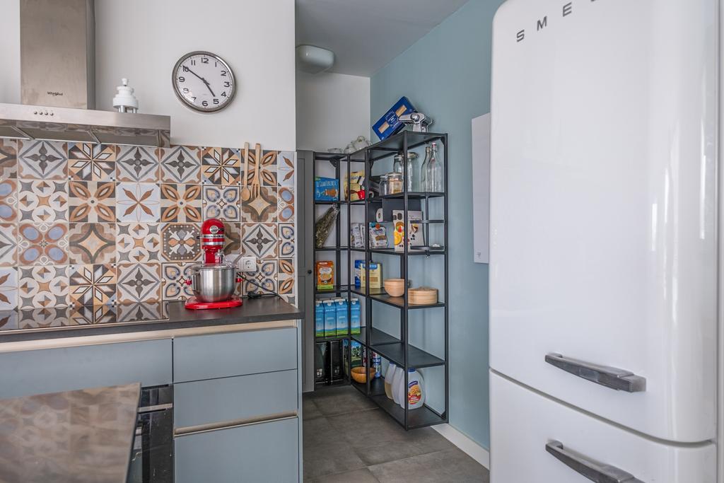 Third floor: Entrance, hall, toilet with wall-mounted toilet and fountain, meter cupboard with district heating unit, storage space with washing machine connection. At the rear of the apartment there are 3 spacious bedrooms. The bathroom was renovated in 2021 and has a marble-look floor walk-in shower, washbasin and bidet. and also has sliding windows on one side. This makes this space wonderfully light. The living room is spacious and has access to the spacious balcony (approx. 11m2) on the southwest. The luxurious L-shaped pen kitchen (2021) can be reached from the living room and has a 5-burner induction hob, steam oven, oven, dishwasher and large refrigerator and freezer. There is also a pantry behind the kitchen. The interior of the house has recently been painted and there is a neat tiled floor throughout the apartment. Finally, there is a private parking space on an enclosed property and an indoor storage room on the ground floor.