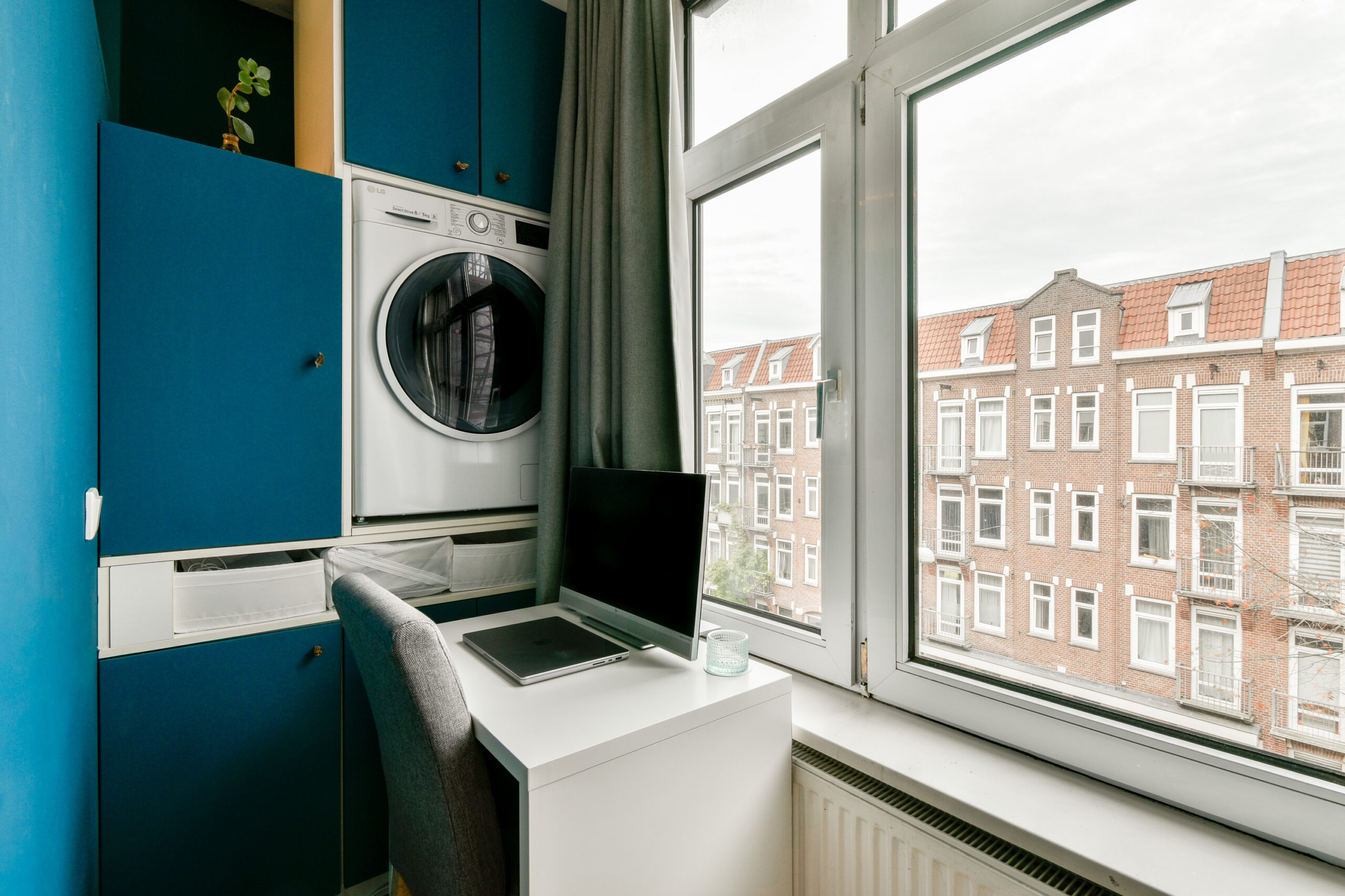 The Spaarndammerbuurt is a cosy and vibrant neighbourhood with a varied selection of shops, cafés and restaurants, all within walking distance. The apartment is close to the Houthavens, an area that has undergone an impressive transformation in recent years. Where ships once unloaded their timber, you now find a lively residential area full of creative businesses. The Houthavens now offer schools, daycare centres, after-school care, a care centre, gyms, trendy bars, atmospheric restaurants and inviting terraces by the water.