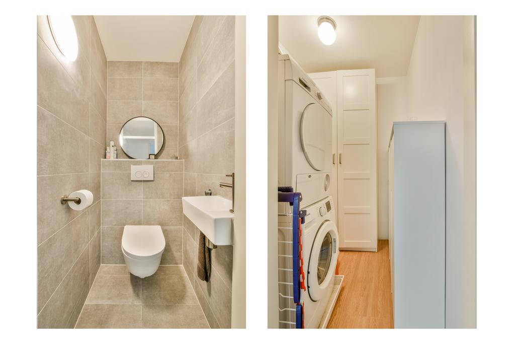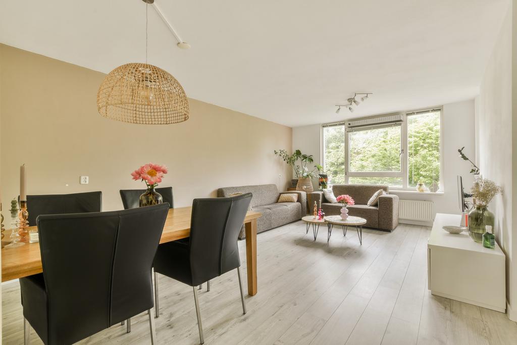 When you enter the hall you immediately feel at home. The spacious and bright living room at the front invites you to spend relaxing evenings. The (living) kitchen, also at the front, has French doors to a cozy and wide-enclosed conservatory that can be heated in winter. The sliding windows that can be fully opened ensure that you can enjoy the afternoon sun to the fullest in summer. You will find two spacious bedrooms at the rear of the apartment, ideal for a family or as a home office and guest room. The bathroom was completely renovated in 2023 and has a modern shower corner and a sink. The toilet, which was also renovated in 2023 with a fountain, is located separately. The separate laundry room is ideal, where there is even room for an extra cupboard. The central heating cabinet is also suitable for modest storage space. Downstairs there is a spacious closed storage room which is nice for extra storage and/or bicycle